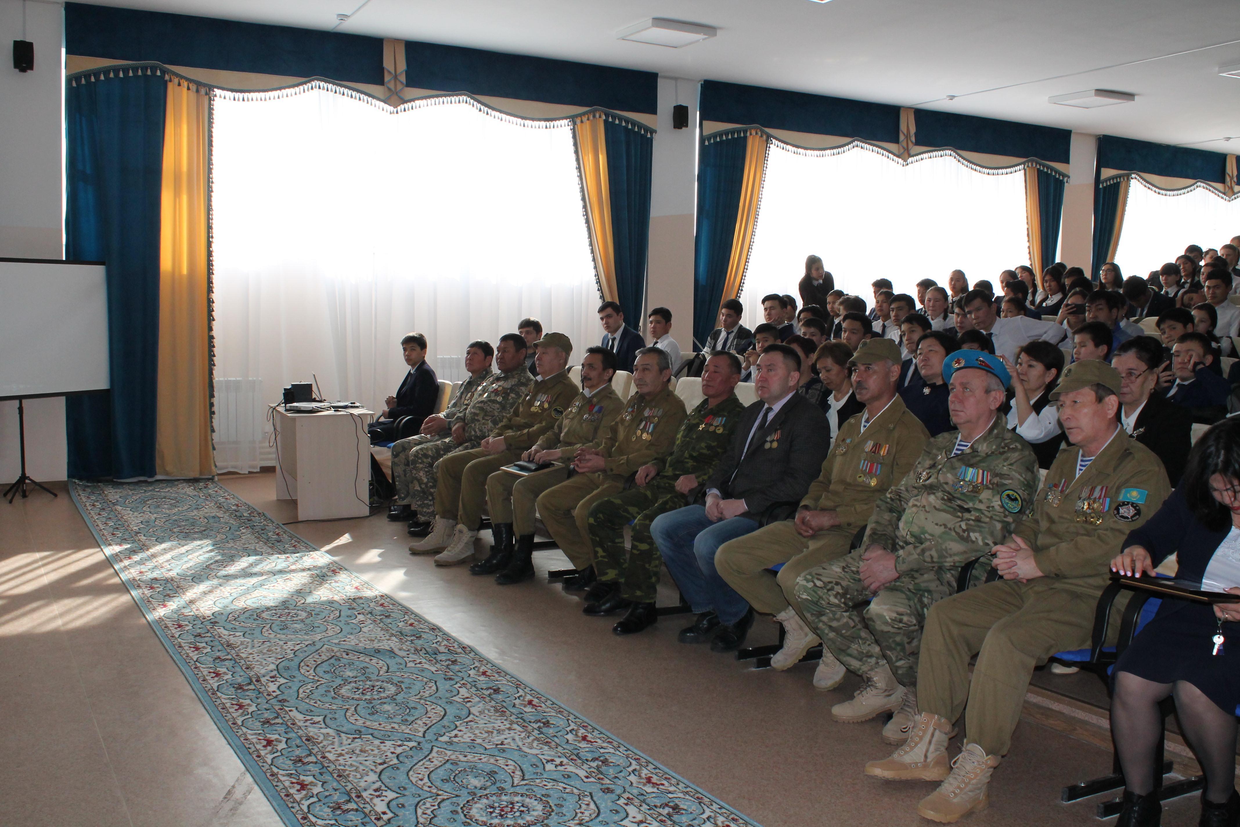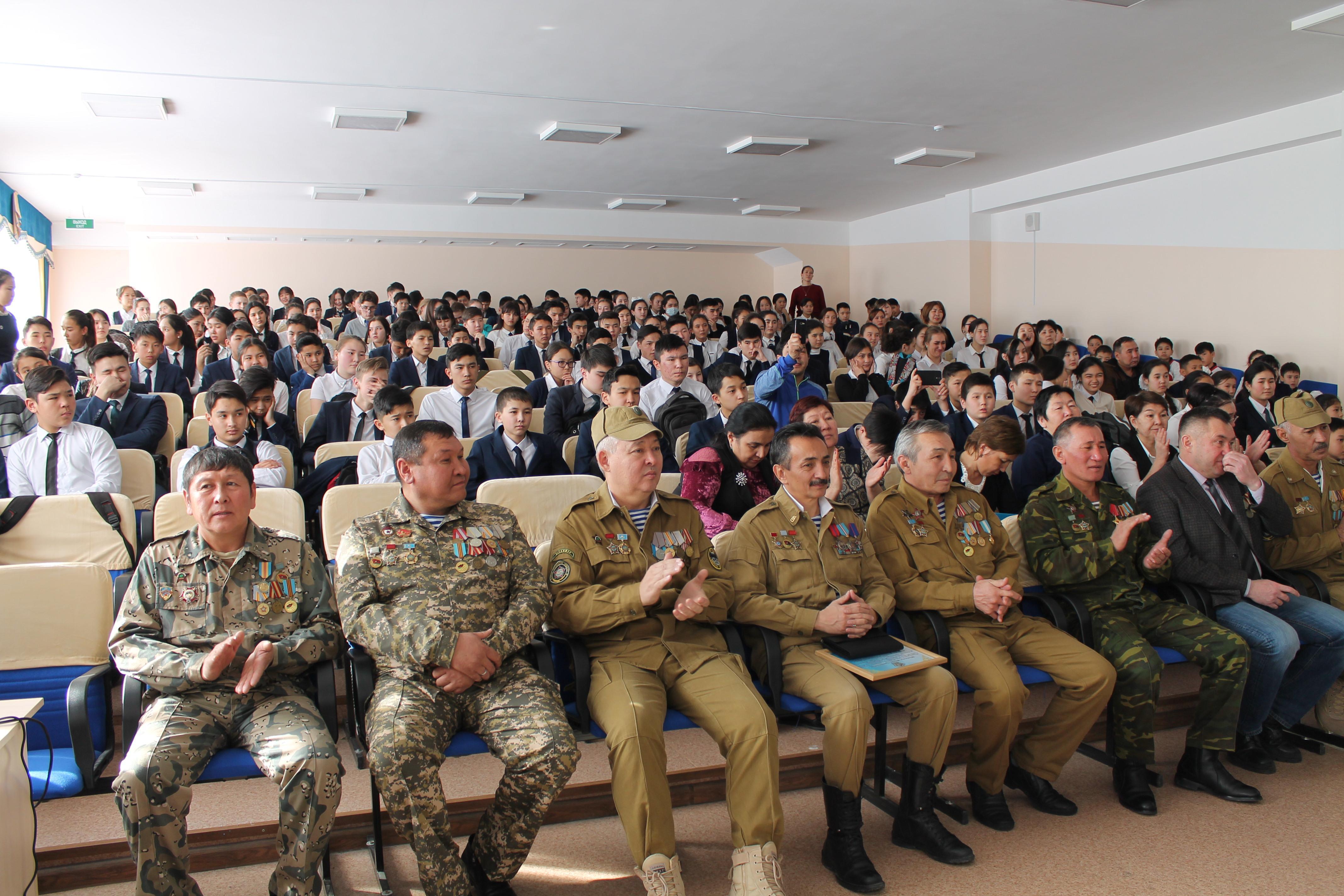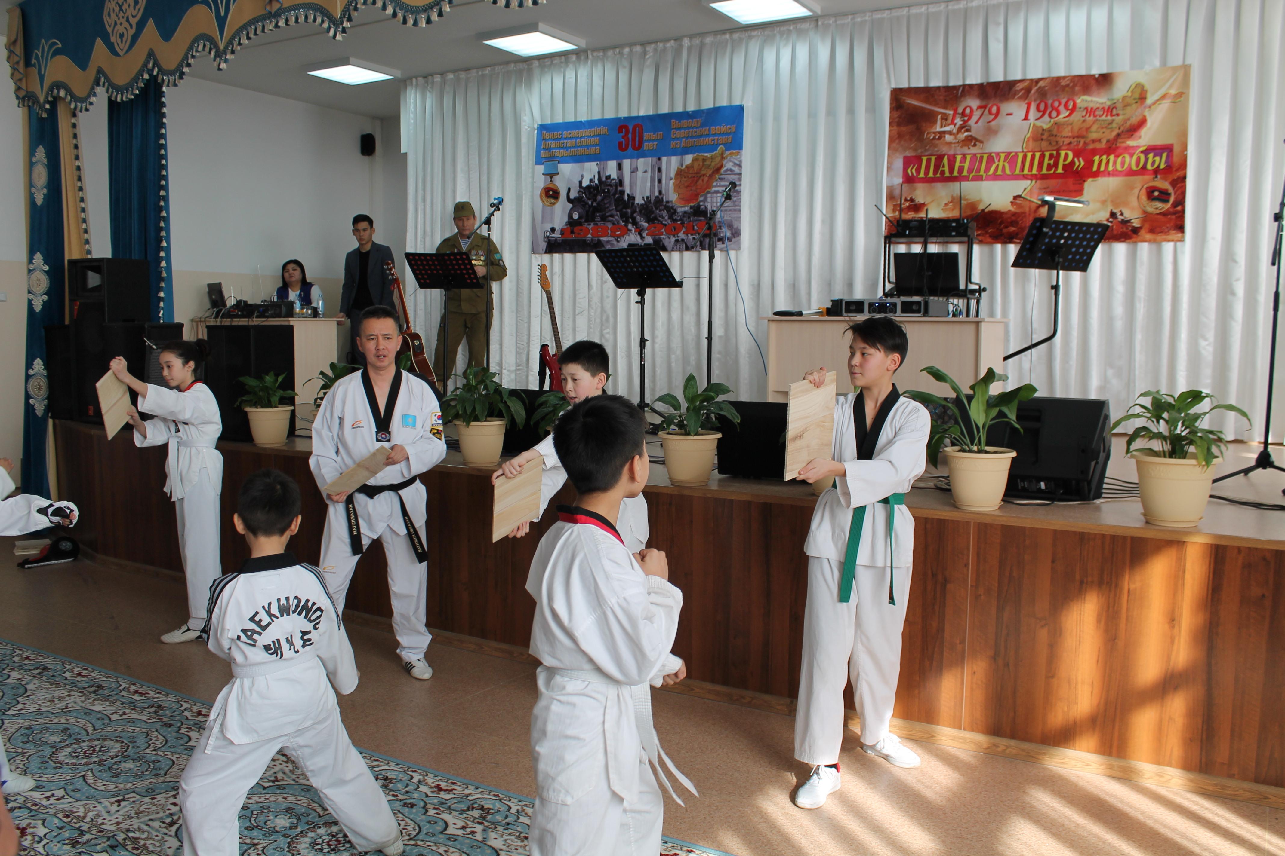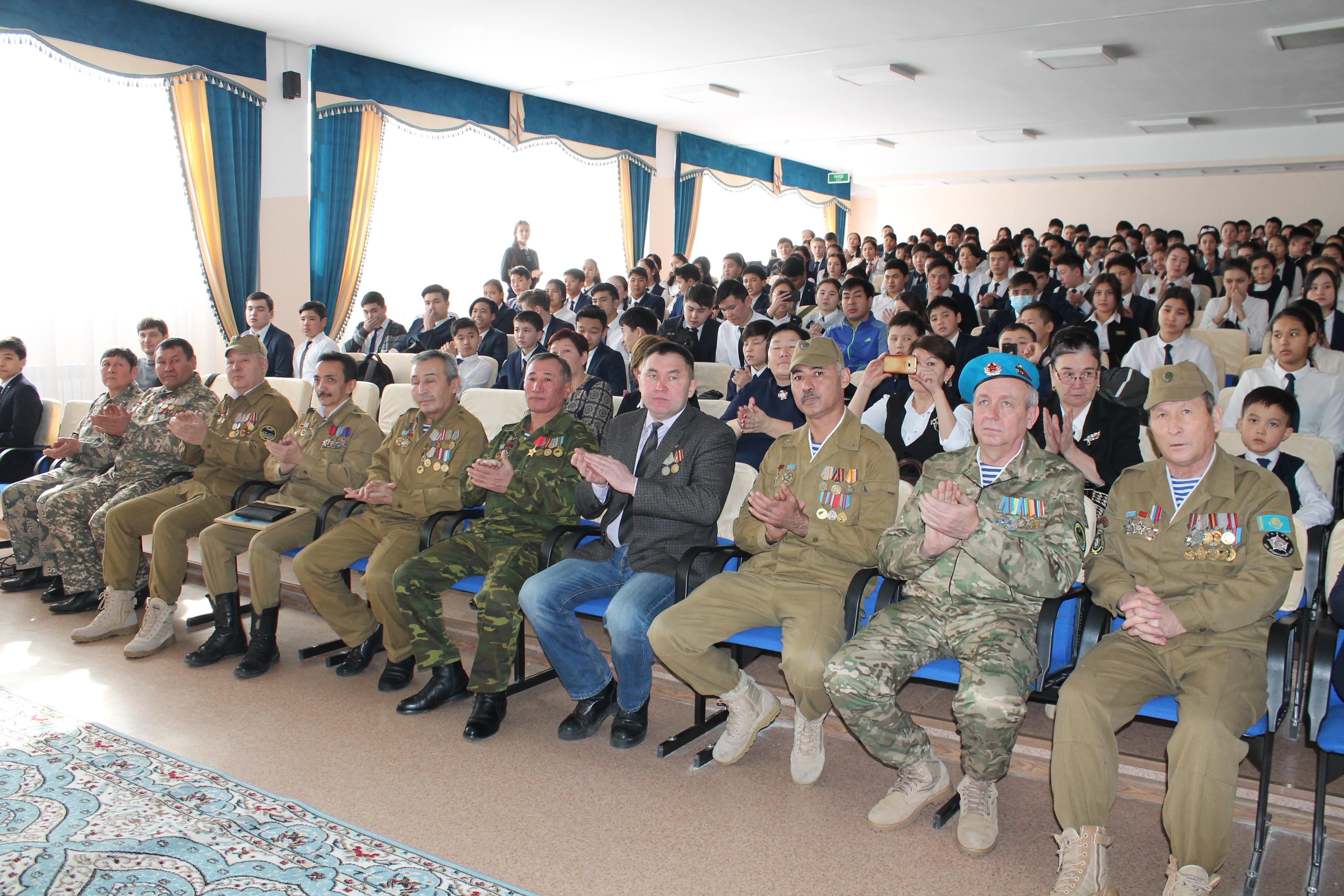 Оқушылар ауған жауынгерлеріне арналған өлеңдер оқыды. Мектептің өнерлі оқушылары Н.Мейлібеков «Батырлар ұраны», «Серілер» тобы «Өз елім», И.Мамыр «Мен қазакпын», атты рухты өрлетер əндерін шарықтата шырқады. Балалар ардагер ағаларына сұрақтарын қойып, зұлмат соғыс жайында көлденең ақпарлардан білмей, ардагерлердің өз аузынан естіп, əңгіме өрбіді.Өз Отанына шексіз берілген, патриоттық рухы жоғары, қайсар жауынгер ағалар ерлігін үлгі ету керек екенін түсінді.