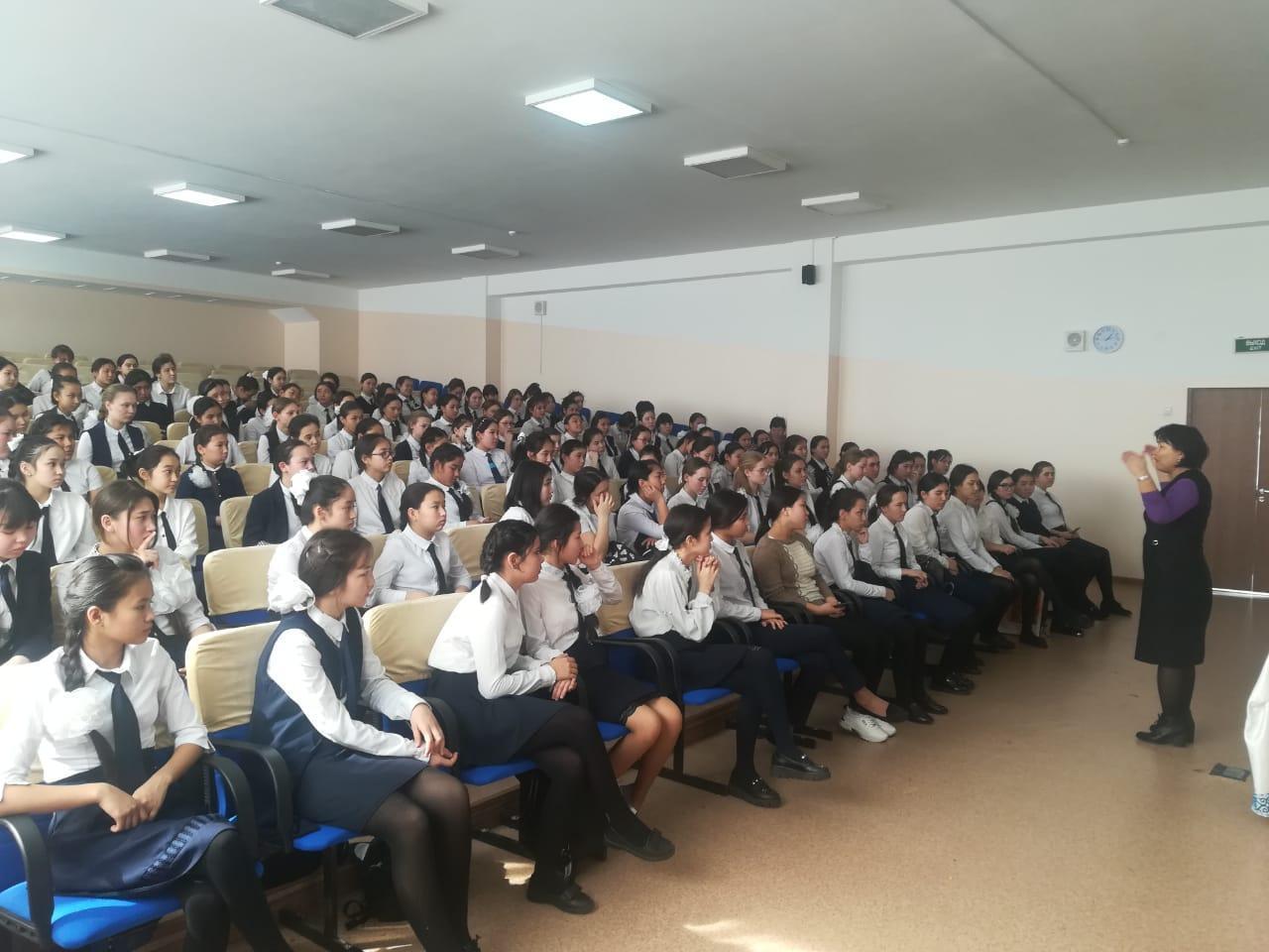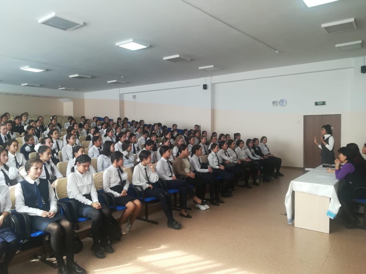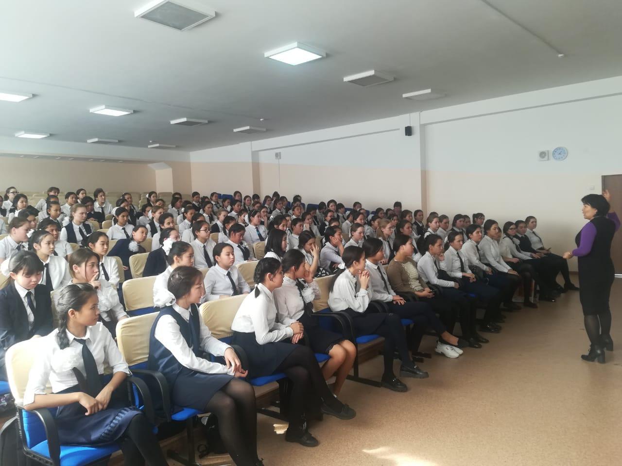 №184 жалпы жалпы білім беретін мектепте 20 ақпан күні директордың тәрбие ісі жөніндегі орынбасары мен мектебіміздің психологтарының ұйымдастыруымен қыздар жиналысы өтті . Жиналыстың басты мақсаты :мектепішілік тәртіпті сақтау , мектеп формасы , ерте жүктіліктің алдын алу жөнінде түсіндіру жұмыстары жүргізілді .Қазақ қыздарына тән имандылық пен инабаттылық қасиеттерінің маңыздылығы айтылып өтті .
