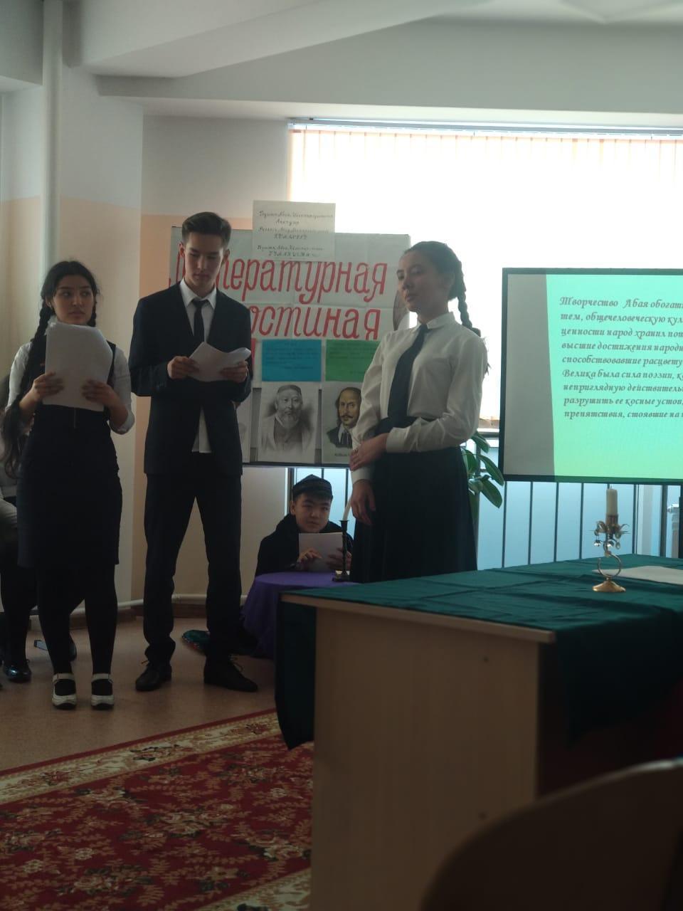 Мероприятие проводилось на 3 языках : русском , казахском и английском . 22 февраля в КГУ "ОШ №184" в новой библиотеке прошла Литературная гостиная на тему : "Пушкин , Абай, Шекспир -поэты -гуманисты ". Ребята читали стихи великих поэтов , показывали презентации , представили инсценировку из романа "Евгений Онегин " , читали "Слова Наздания " , сцену из трагедии "Ромео и Джульетта ". Также исполняли песни на стихи Абая ,Пушкина . Гостиную организовали учителя русского языка и литературы Мухаббат Тельмановна Баратова , Лязат Тохтаровна Султангазиева , библиотекарь Сандугаш Кайыржановна Ермекбаева .