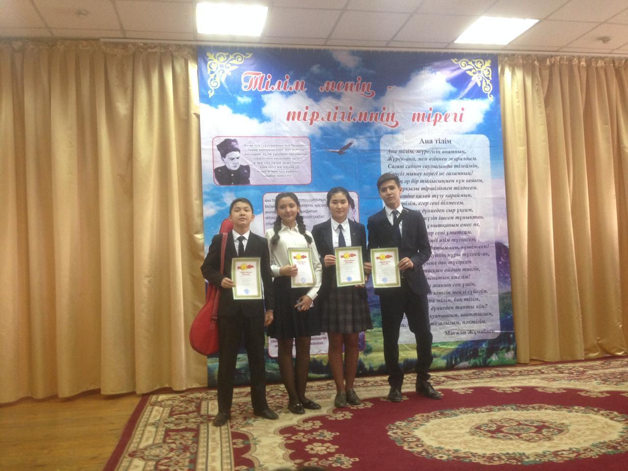 "Көркемсөз оқу " номинациясы бойынша өз дарынын таныта білген II орын иегері Колен Марғулан 8 "А" сынып оқушысы . Жетекшісі Байбутанова Торғын Уткельбаевна.