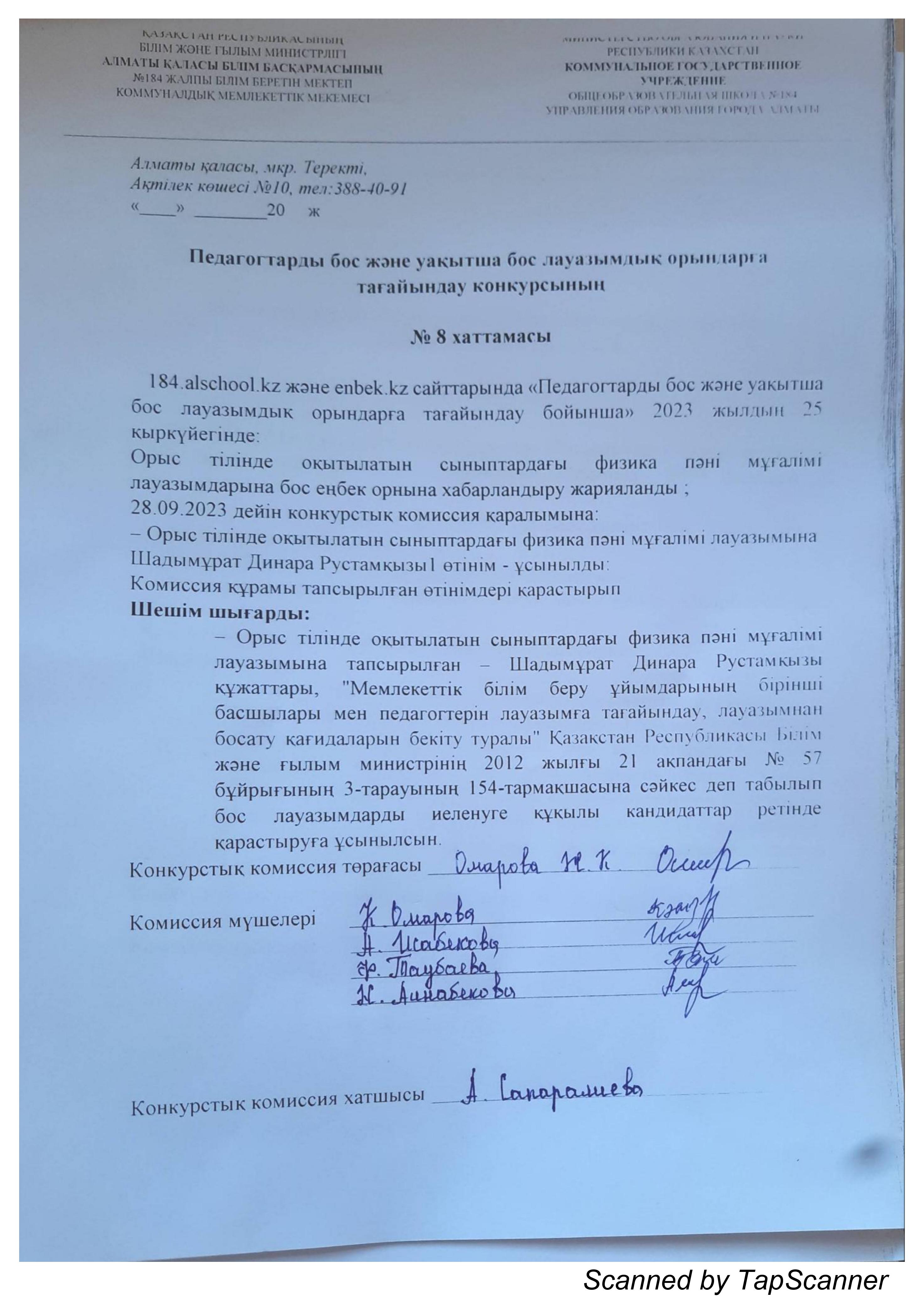КГУ «Общеобразовательная школа №184» Управления образования города Алматы