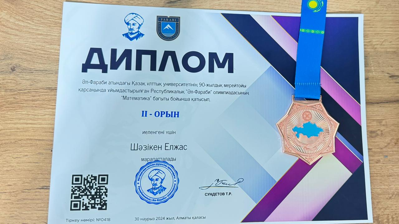 Әл-Фараби атындағы Қазақ ұлттық университетінің 90-жылдық мерейтойы қарсаңында ұйымдастырылған Республикалық "Әл-Фараби" олимпиадасының "Математика" бағыты бойынша №184 жалпы білім беретін мектептің 8 "Ә" сынып оқушысы Шәзікен Елжас қатысып, ІІ орынға ие болды. Құттықтаймыз!