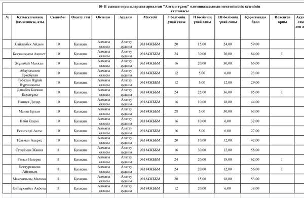 Қазақстан Республикасы Ғылым және жоғары білім министірлігі мен Оқу ағарту министірлігі «Дарын» РҒПО-ның қолдауымен және «Зерделі» ақыл –ой дамыту мектебінің облыстық білім беру басқармаларының қолдауымен Республикалық 10-11 сынып оқушыларына математика пәнінен VI «Алтын түлек» олимпиадасының мектепшілік кезеңі өтті. Олимпиада қорытындысы бойынша аудандық кезеңге 10 "а" сынып оқушысы Бекжанқызы Ақниет. 10"а" сынып Данабек Бағжан. 11"ә" сынып Ғасыл Назерке. 11 "а" сынып Бектұрғанова Айғаным жолдама алды. Сәттілік тілейміз!