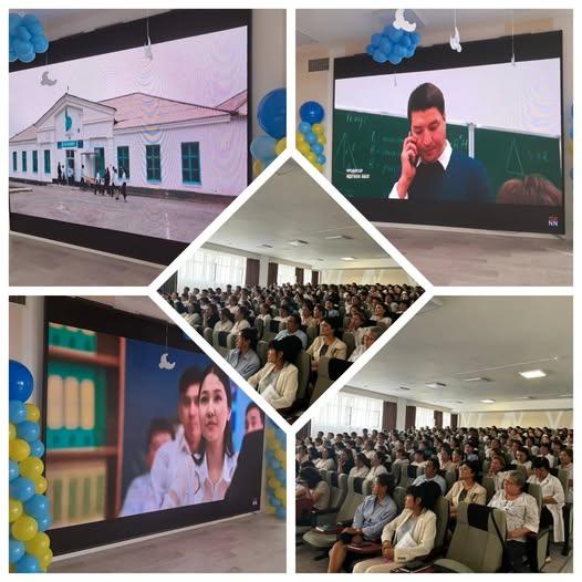 №184 ЖББМ-тің педагогтеріне идея авторы- белгілі журналист Бейсен Құранбектің , сценарийін жазған – Гүлмира Қадырқызының «Ұстаз» фильмі көрсетілді.