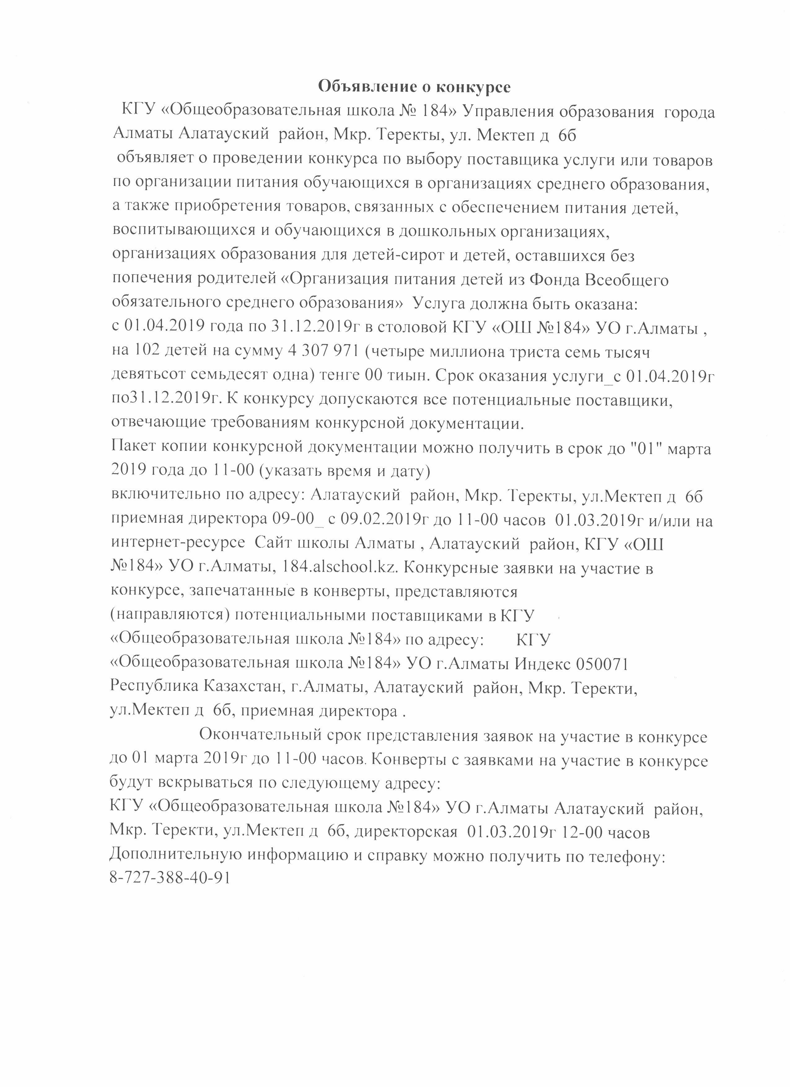 08 февраль 2019 0 1 2 3 4 5 Объявление о конкурсе untitled_fr11_pdf-prikaz-po-pitaniju-na-2019g.pdf [105,84 Kb] (cкачиваний: 8) Посмотреть онлайн файл: untitled_fr11_pdf-prikaz-po-pitaniju-na-2019g.pdf Осы беттің QR-коды:QR-код этой страницы: