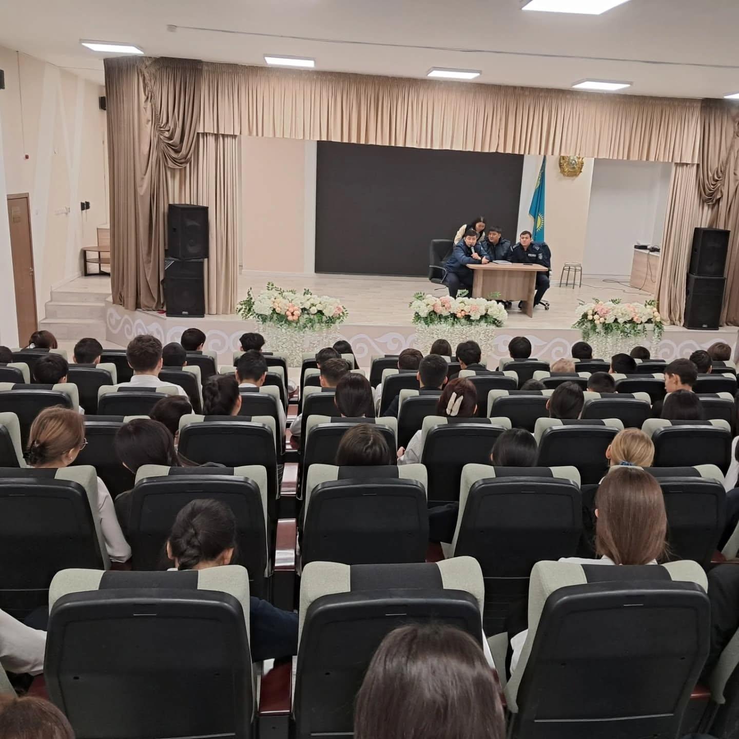 Алатау аудандық учаскелік инспекторы полиция аға лейтенанты А. Мухидин және мектеп психологтары оқушыларға “Діни эктремизмге жол жоқ” атты тақырыпта түсіндірме жұмыстарын жүргізді.
