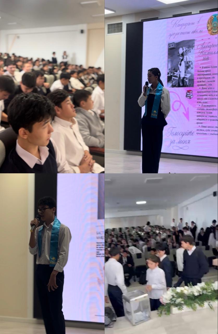 2025 жылдың 16 қазан күні “#184 жалпы білім беретін мектеп” КММ-де өзін-өзі басқару ұйымының көшбасшысы – мектеп президентін сайлау өткізілді. Сайлау үдерісі екі кезеңнен тұрды.Бірінші кезеңде, мектеп президенттігіне үміткер 8 оқушы өз кандидатураларын ұсынған презентация дайындап, мектептің Instagram парақшасына жүктеді. Бұл бейнероликтер арқылы оқушылар, мұғалімдер және ата-аналар үміткерлермен танысып, қолдау білдіру мақсатында лайк басып, пікірлер қалдырды.