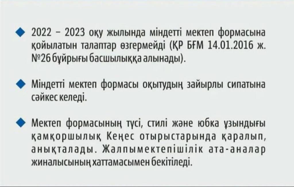 08 август 2022 0 1 2 3 4 5 Ата-аналар мен оқушылар назарына! Мектеп формасына қойылатын талаптар. Осы беттің QR-коды:QR-код этой страницы:
