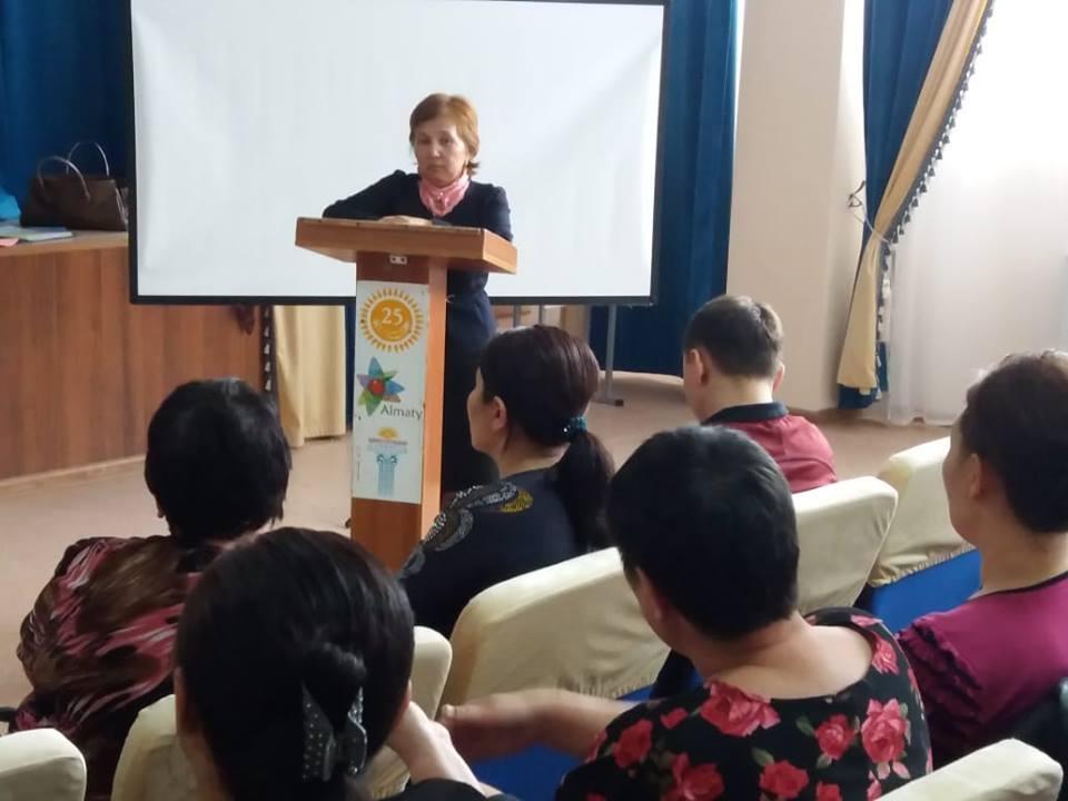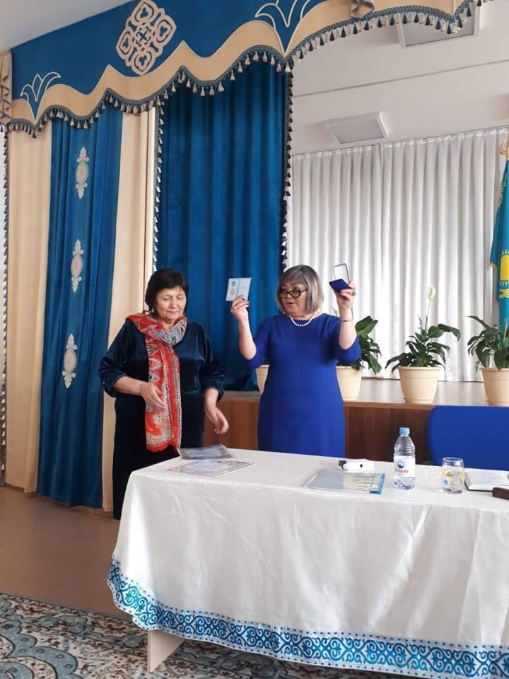 Педсоветте ұлағатты ұстазымыз биология пәнінің мұғалімі " Қазақстанның Ұлағатты Ұстазы " төсбелгісімен марапатталды.