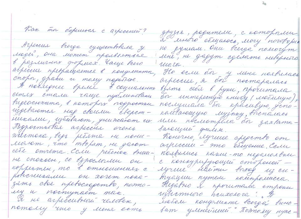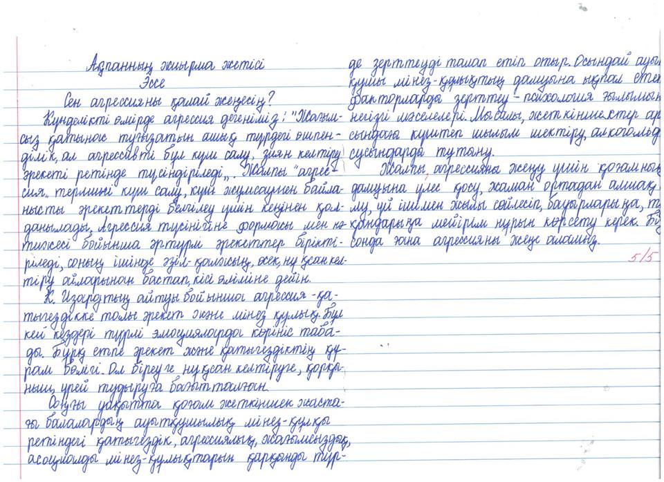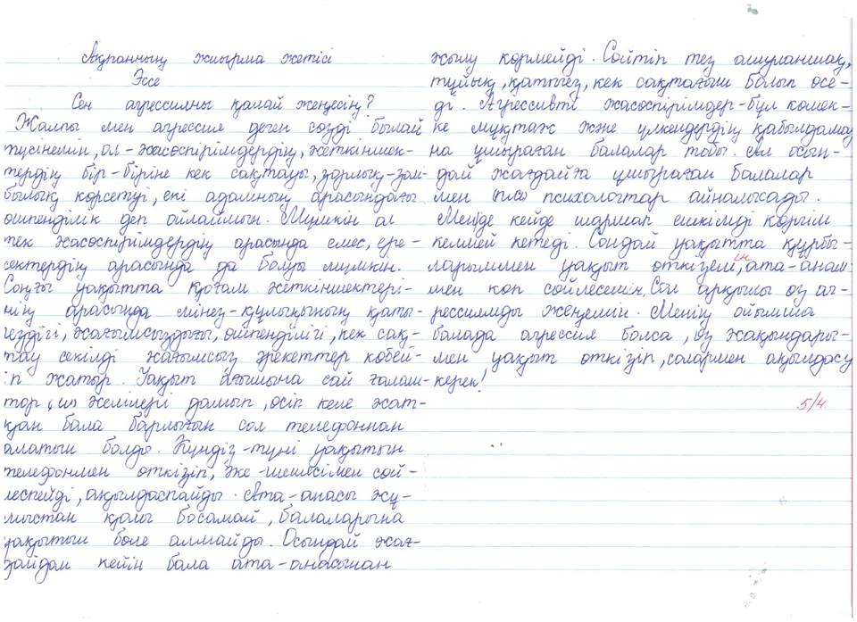 Кәмелетке толмағандар арасындағы қатыгездік пен қорлауға құмарлықты болдырмау және алдын алу мақсатына бағытталаған бейнероликтің көрсетілімі болды . Бейнеролик көрсетілімі 6-11 сынып оқушылары арасында ұйымдастырылды . Көрсетілім нәтижесі ретінде " Сен агрессияны қалай жеңесің ? " тақырыбында эссе жазылды .