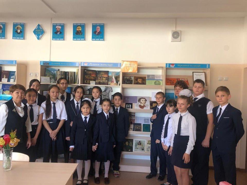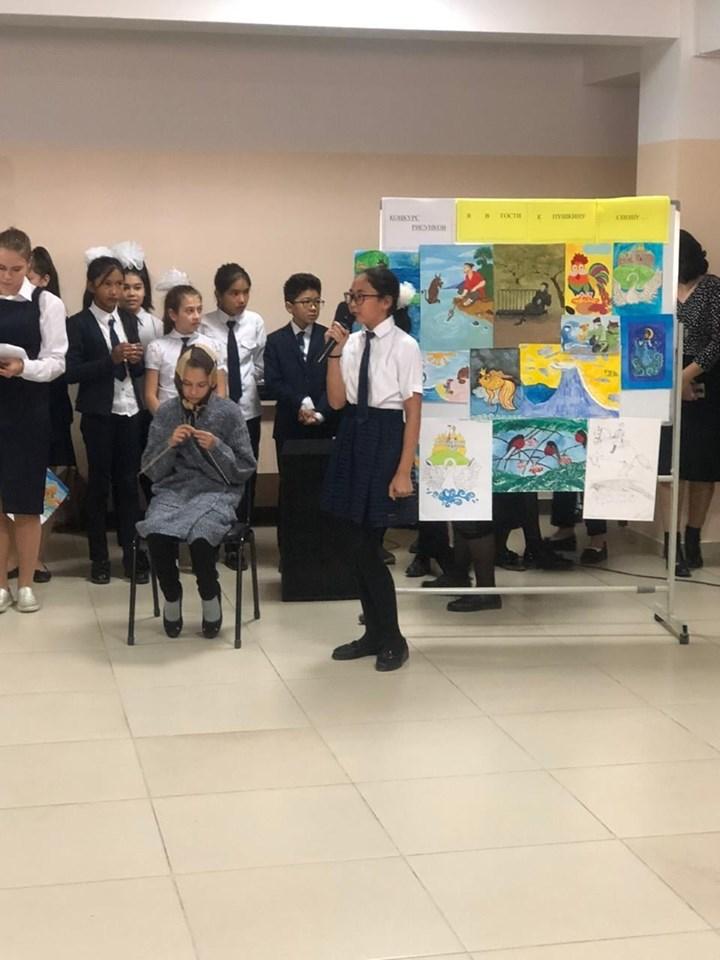 Конкурс чтецов на тему: "Я Пушкина читаю строки". Цель: воспитание у учащихся любви к искусству слова, пропаганда творчества А.С.Пушкина в честь 220-летия поэта, воспитание творческого начала у одаренных детей. Конкурс прошел в библиотеке КГУ "ОШ №184", принимали участие учащиеся 5-10 классов как казахских, так и русских классов. Критерии: правильное произношение, орфоэпия, дикция, выразительность, эмоциональность, жесты и мимика.