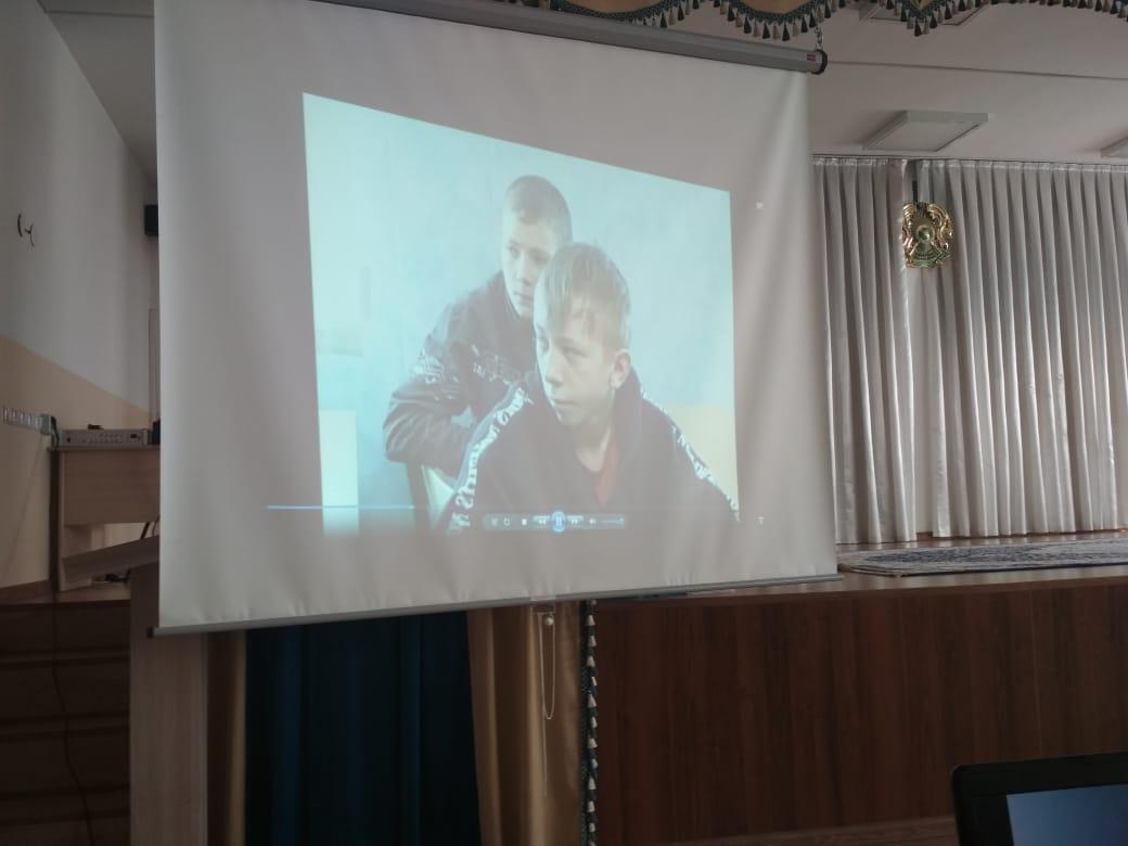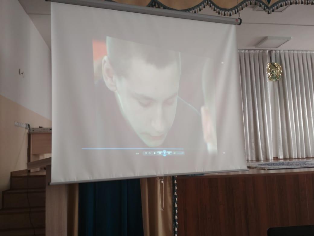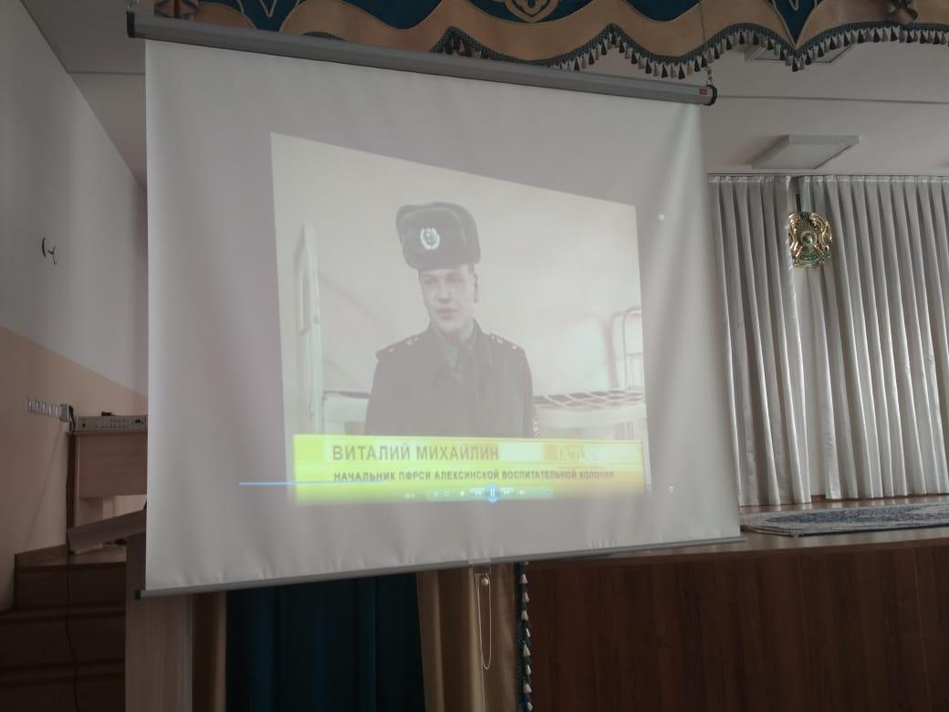 Оқушыларға жасөспірімдердің жасаған қылмыстық әрекеттері туралы видеоролик көрсетті. Сонымен қатар, жастардың құқықтық сауаттылығын дамыту да қылмыстың алдын алу шарттарының бірі болып саналатыны туралы түсіндірді.