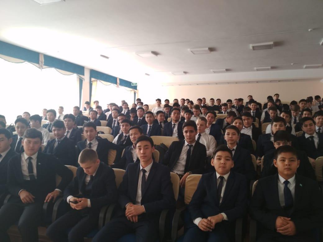 2020 жылдың 15 қаңтар күні, №184 жалпы білім беретін мектеп директорының тәрбие ісі жөніндегі орынбасарлары К.Омарова мен А.Абилгазиева құқықбұзушылықты болдырмау және оның алдын алу бойынша 8-10 сынып оқушыларының ұлдарына жиналыс өткізді.