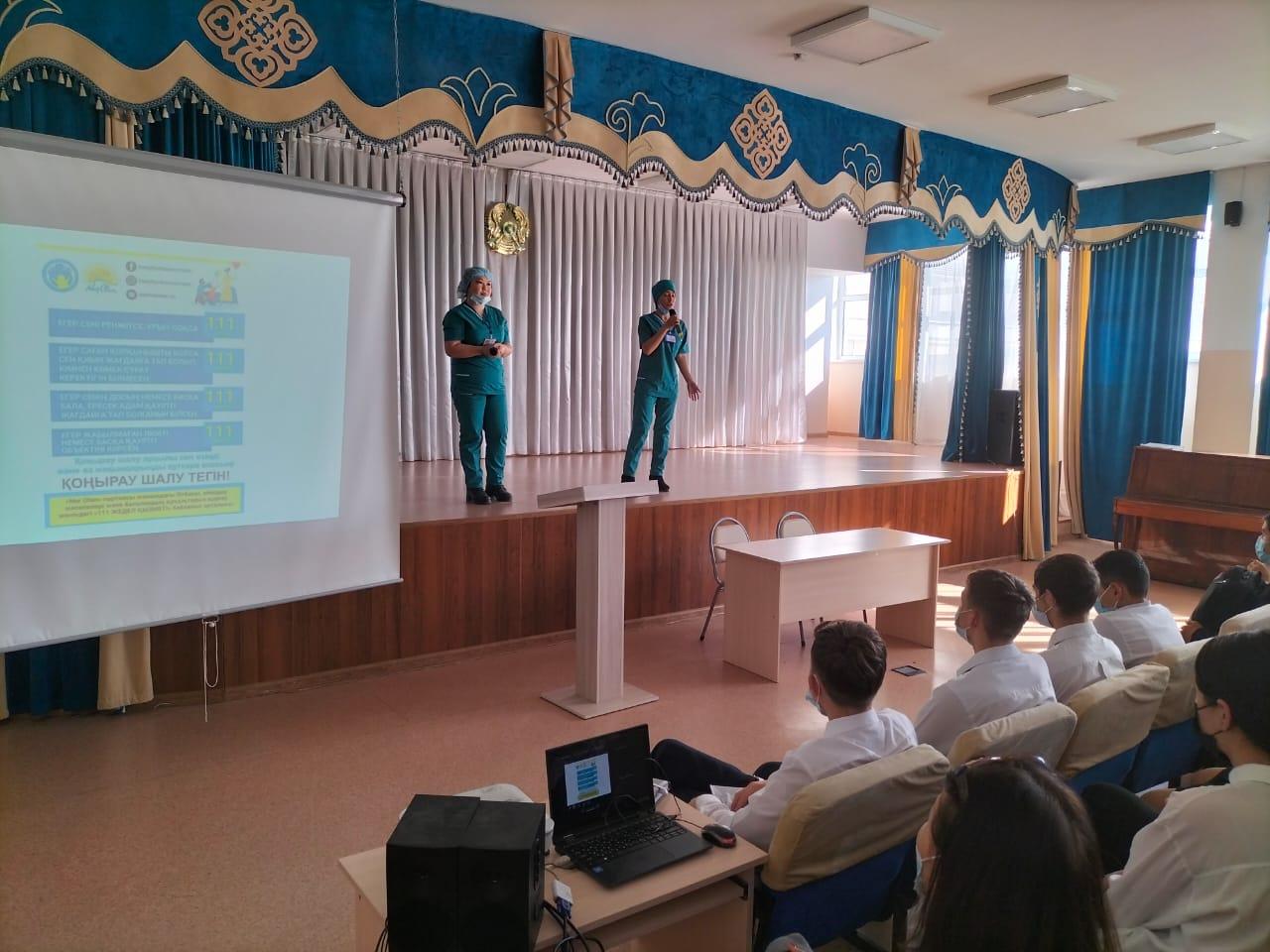 "Қатігездік пен зорлық-зомбылықсыз балалық шақ" республикалық ақпараттық науқаны аясында, 12 қараша күні #29 қалалық емхананың психологтары У.С Жумабаева, А.Т. Аленова 7-10 сынып оқушыларына "Қатігездік пен зорлық-зомбылықсыз балалық шақ" тақырыбында тренинг, дәріс сабақтарын өткізді