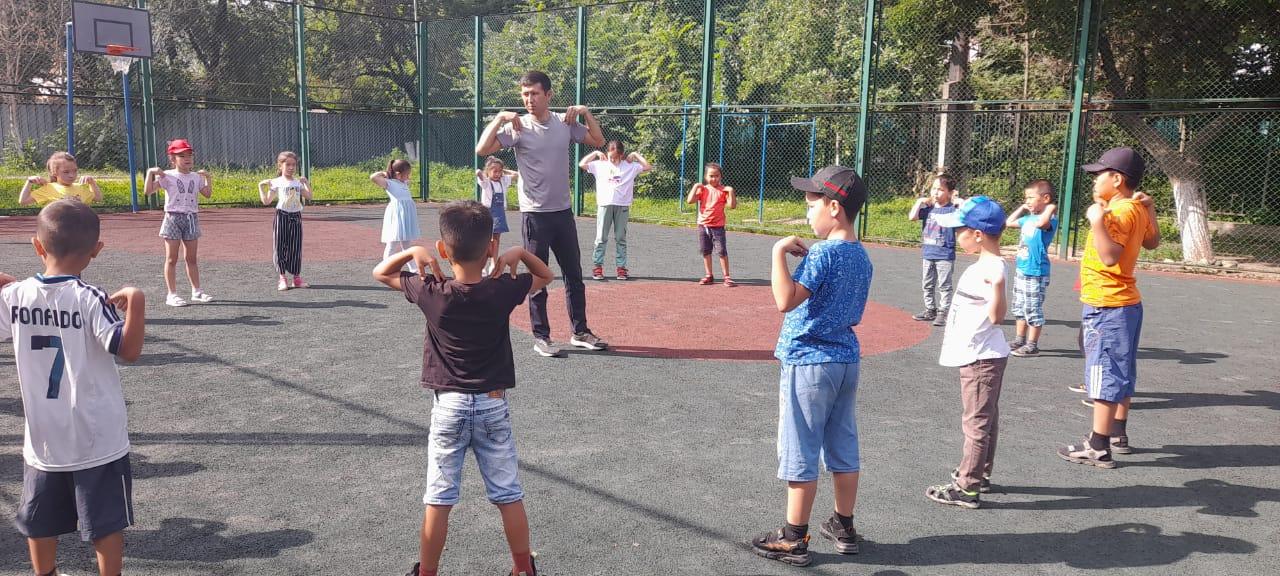 09.00де балаларды тәрбишілері қабылдап алды.Дене шынықтыру пәні мұғалімі балалармен таңғы бой жазу жаттығуларын жасады.