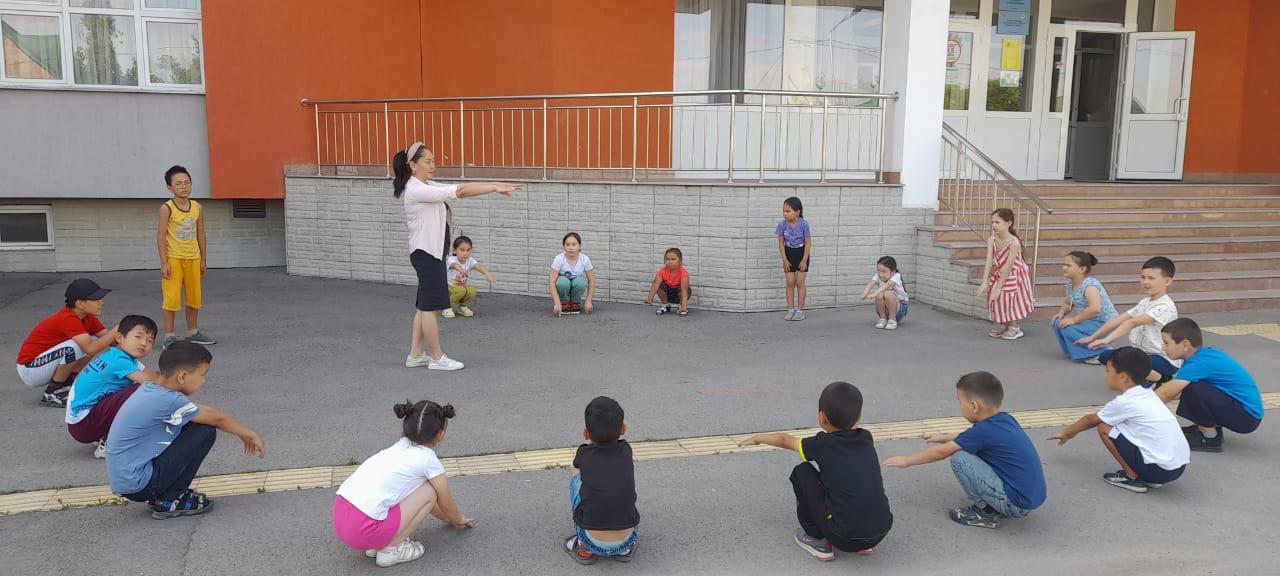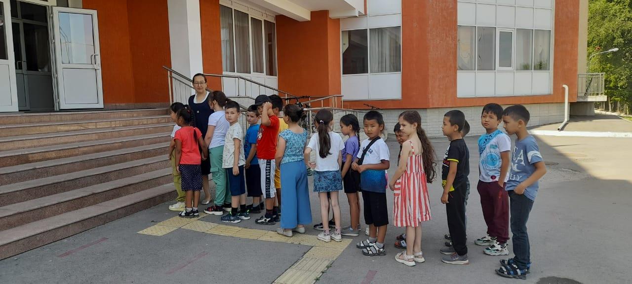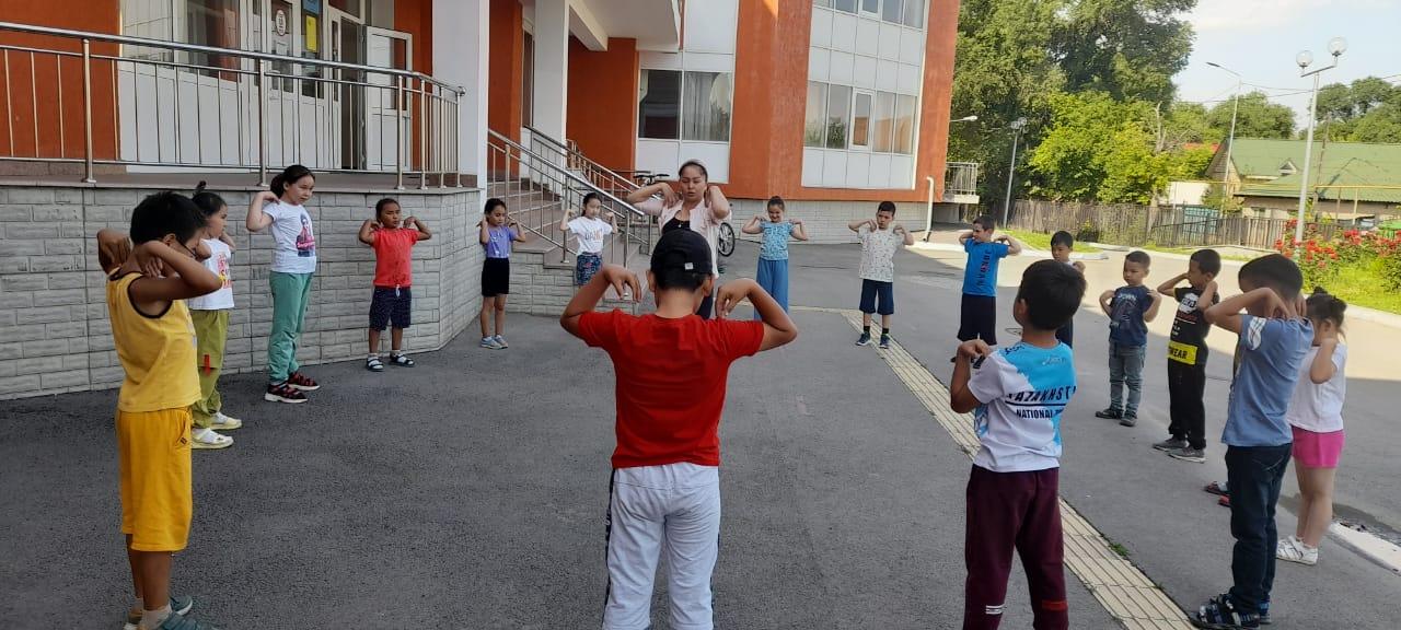 Балаларды тәрбиешілері 09.00-де қабылдап алды. Дене шынықтыру пәні мұғалімдері балалармен таңғы бой жазу жаттығуларын жасады.