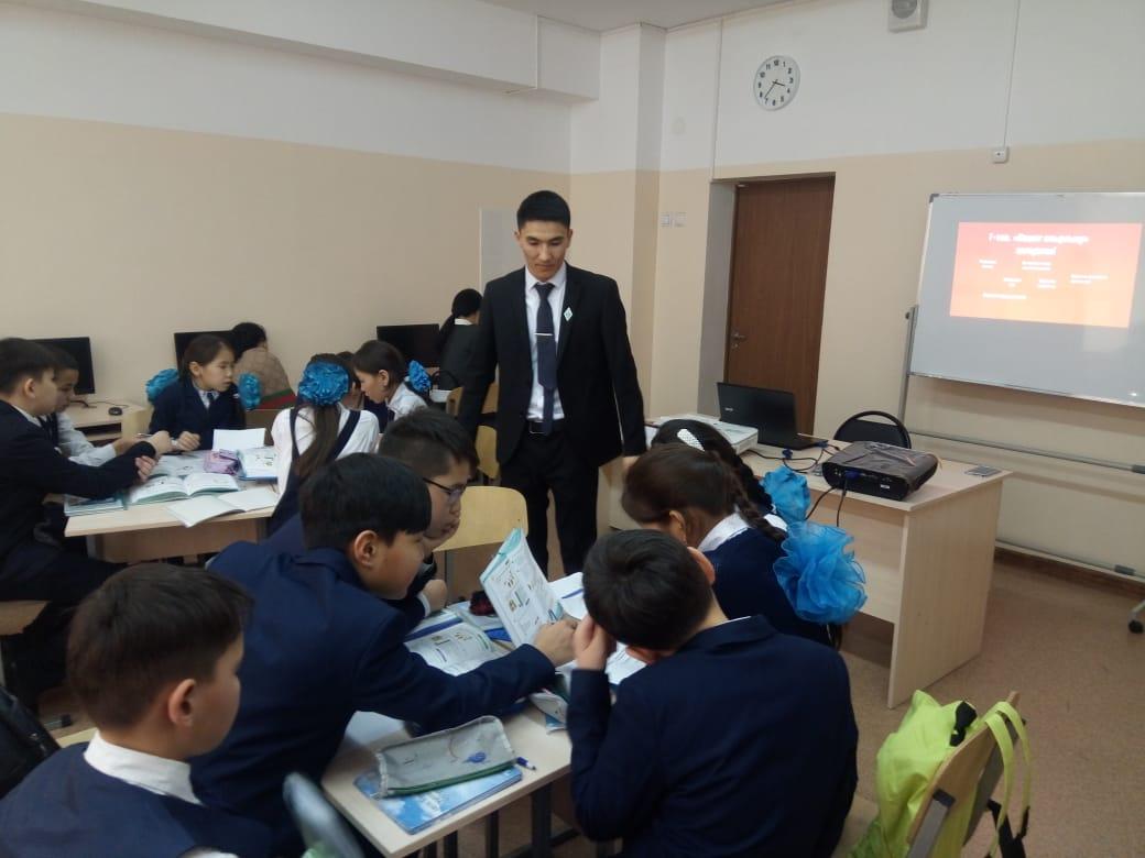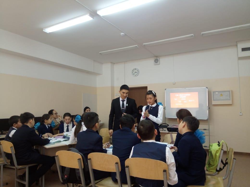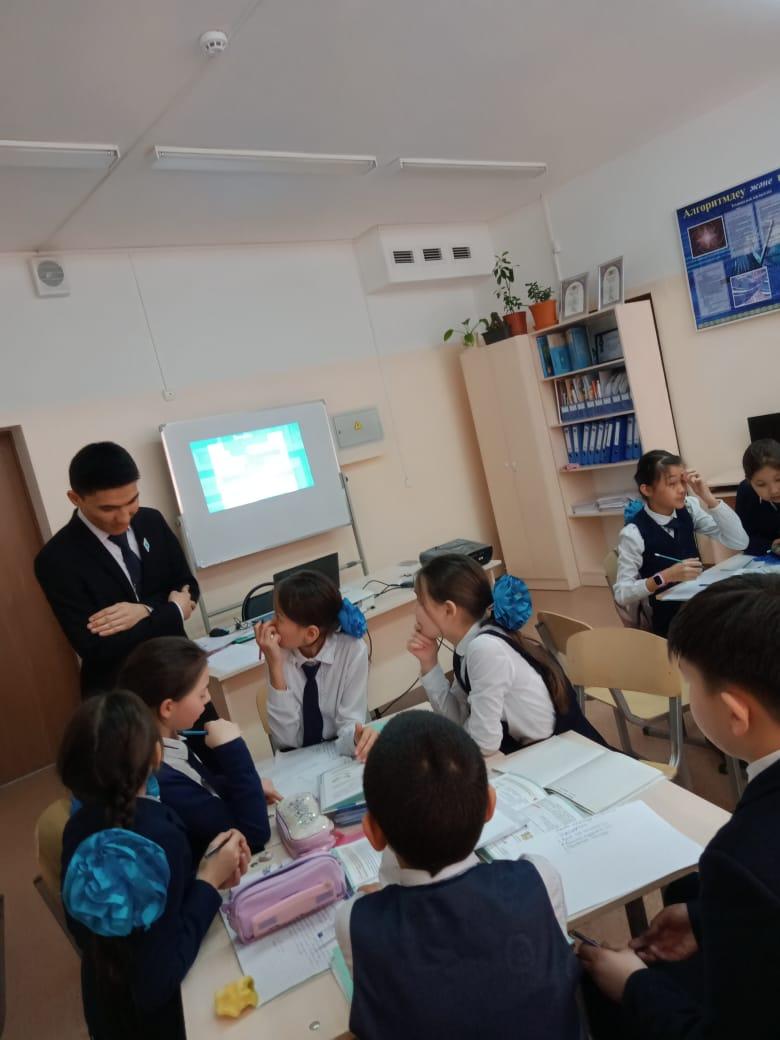 №184 ЖББ мектепте «Әлем – нақты ғылымдар тілінде!» атты жаратылыстану-математика пәндері онкүндігінде жас маманымыз информатика пәні мұғалімі Б.Жайлхан 5 «Ә» сыныбымен «Алгоритмдер және олардың түрлері» атты тақырыпта ашық сабақ өтті. Ашық сабақ барысында оқушылар жақсы көңіл-күйде болып, өз білімдерін толықтырды. Топтық , жұптық және жеке жұмыстар ,сонымен қатар түрлі әдіс тәсілдер қолданылып, сабақ қызықты өтті. Бұл сабаққа өзара тәжірбие алмасу мақсатында мектебіміздің жас мамандары қонақ болып қатысты.