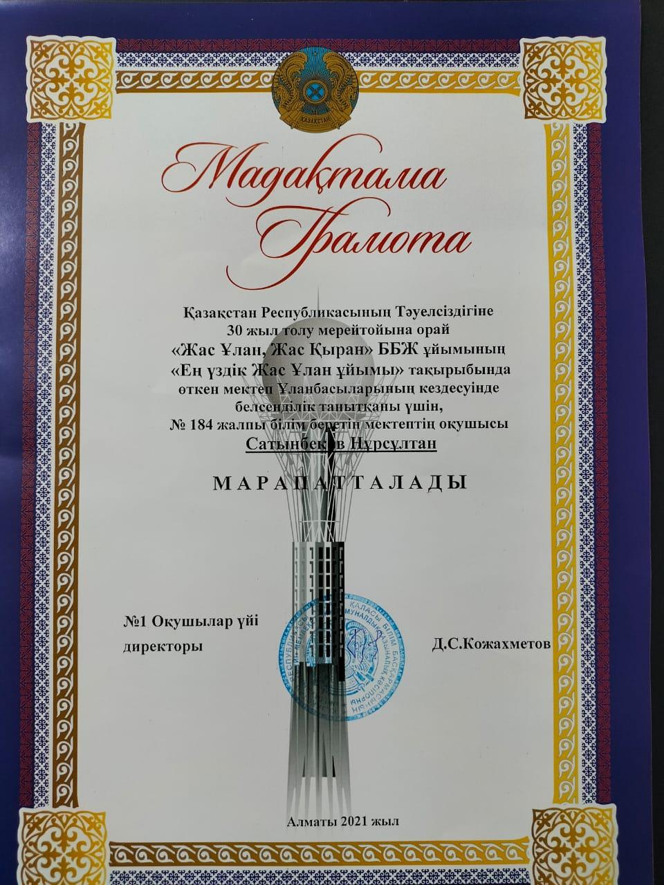КГУ «Общеобразовательная школа №184» Управления образования города Алматы