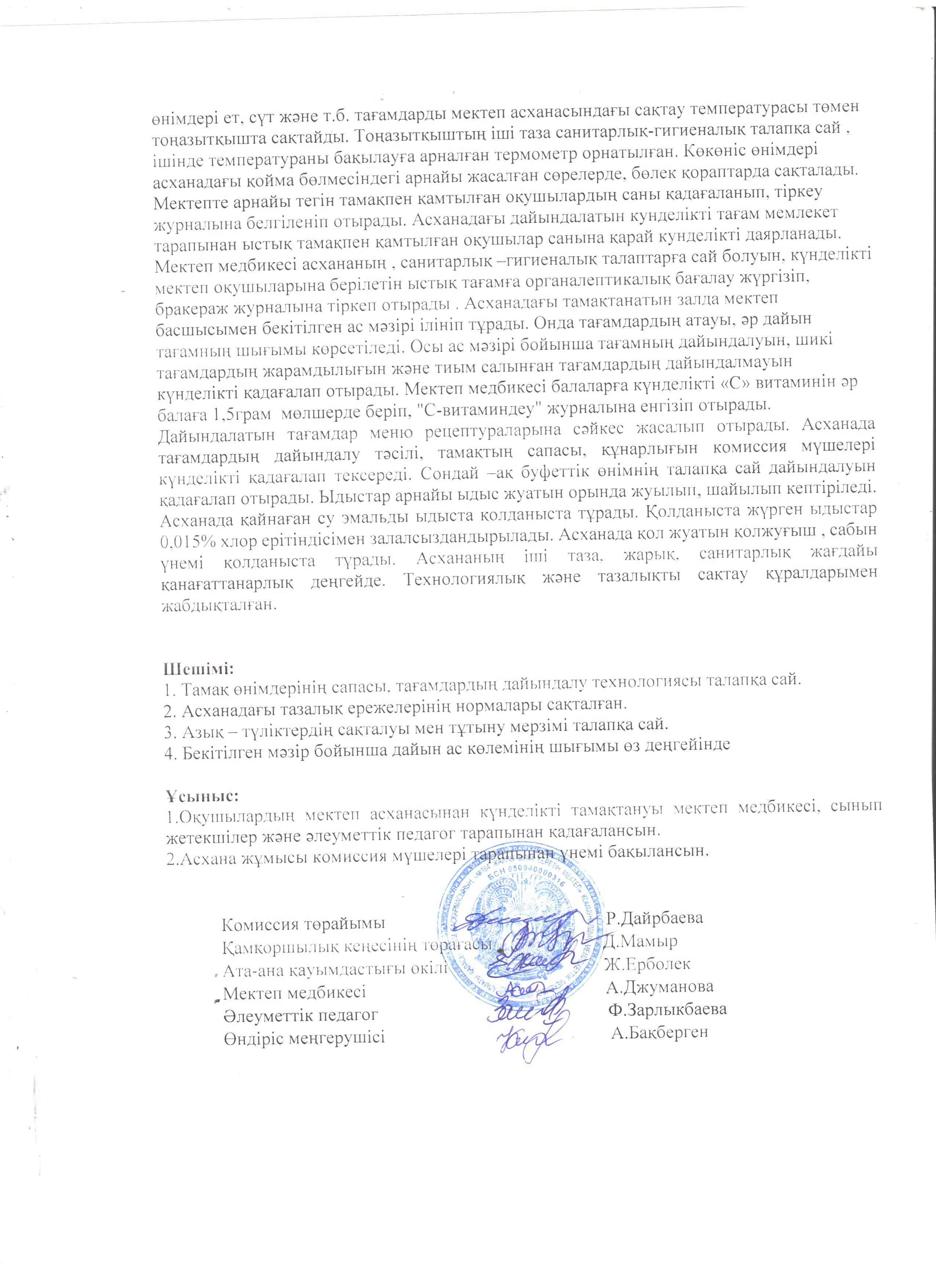 » Тамақтандыру сапасының мониторингі