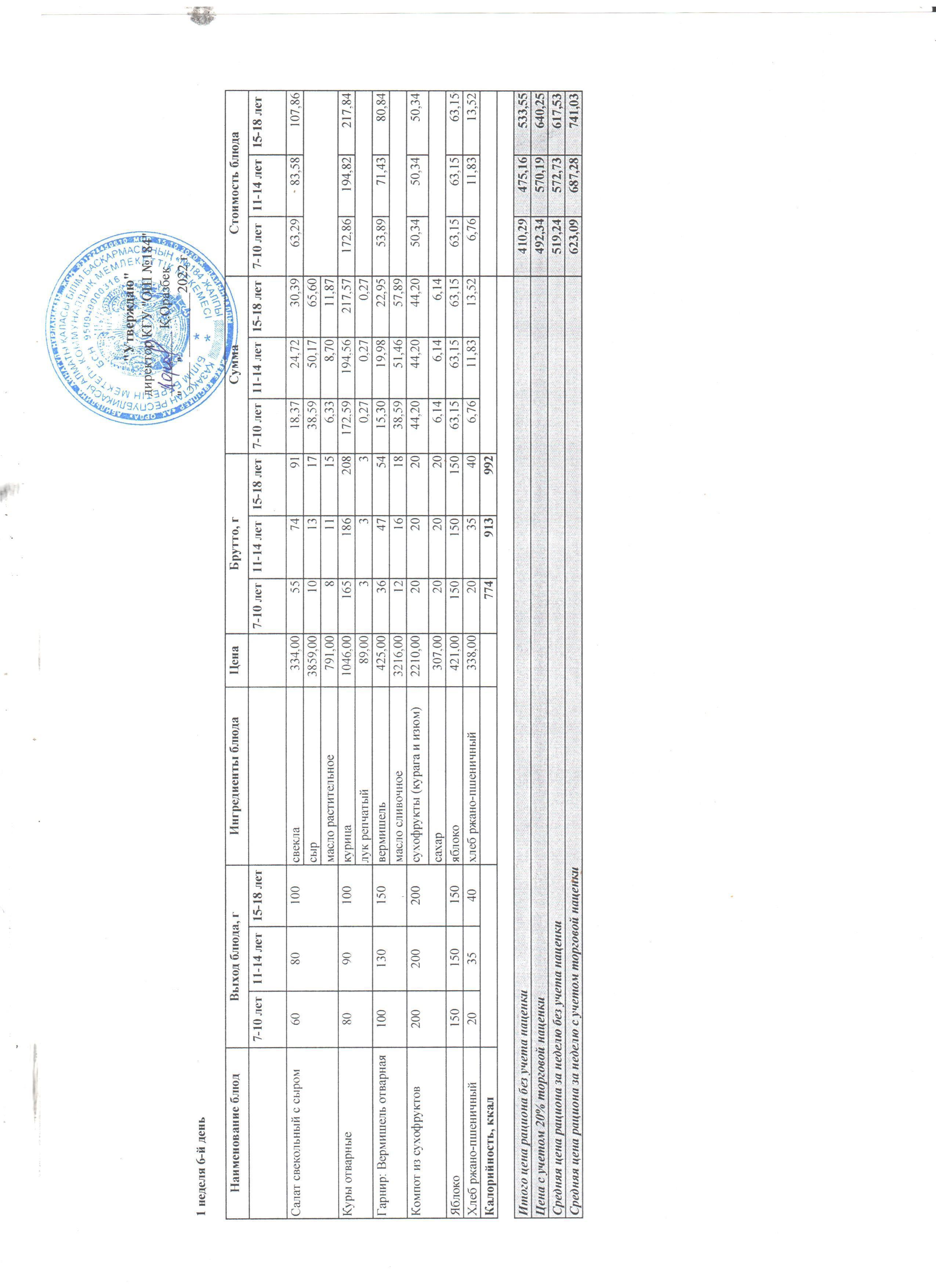 05 март 2022 0 1 2 3 4 5 Меню блюд. 1неделя 6-день (05.03.2022) Осы беттің QR-коды:QR-код этой страницы: