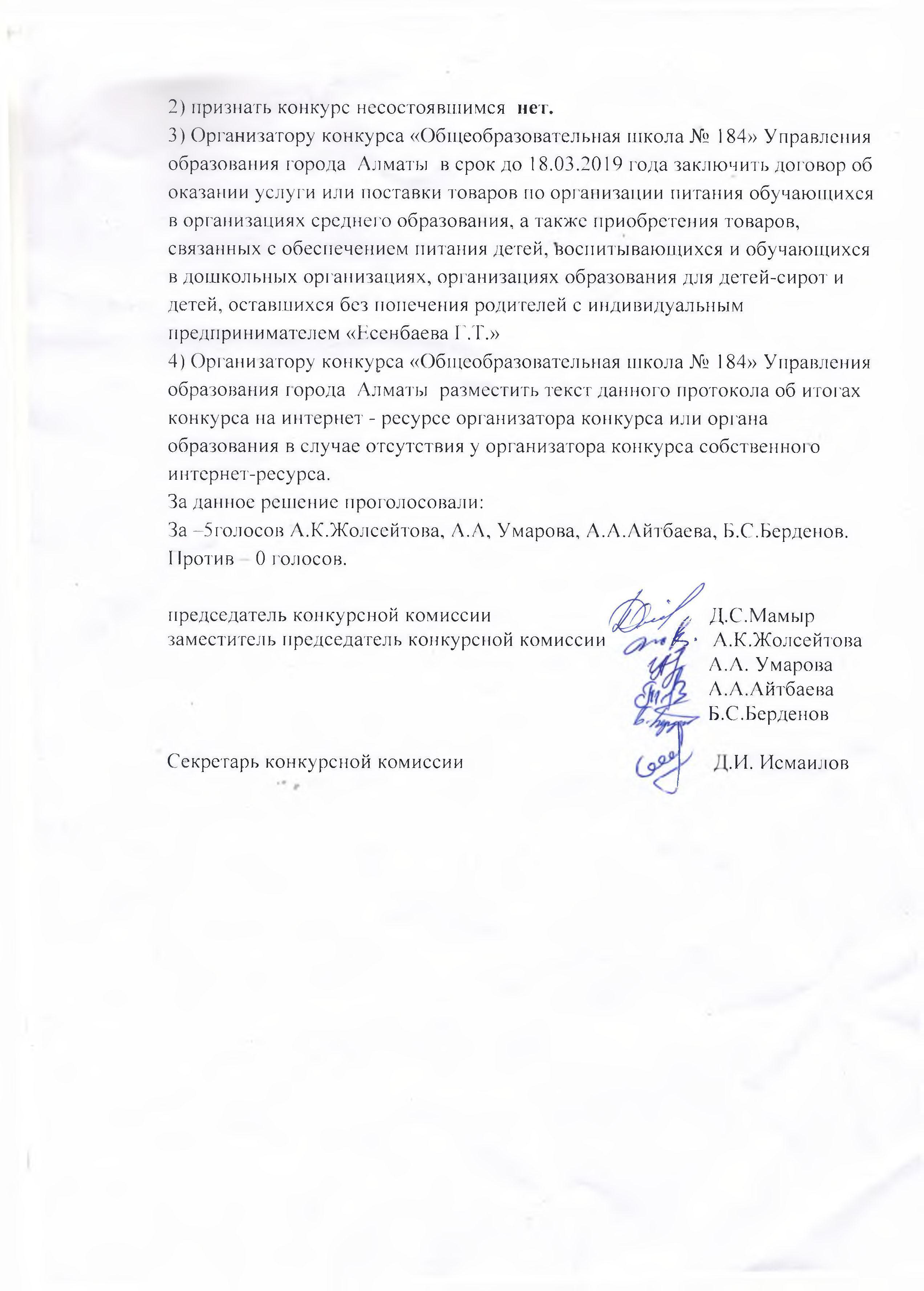 КГУ «Общеобразовательная школа №184» Управления образования города Алматы