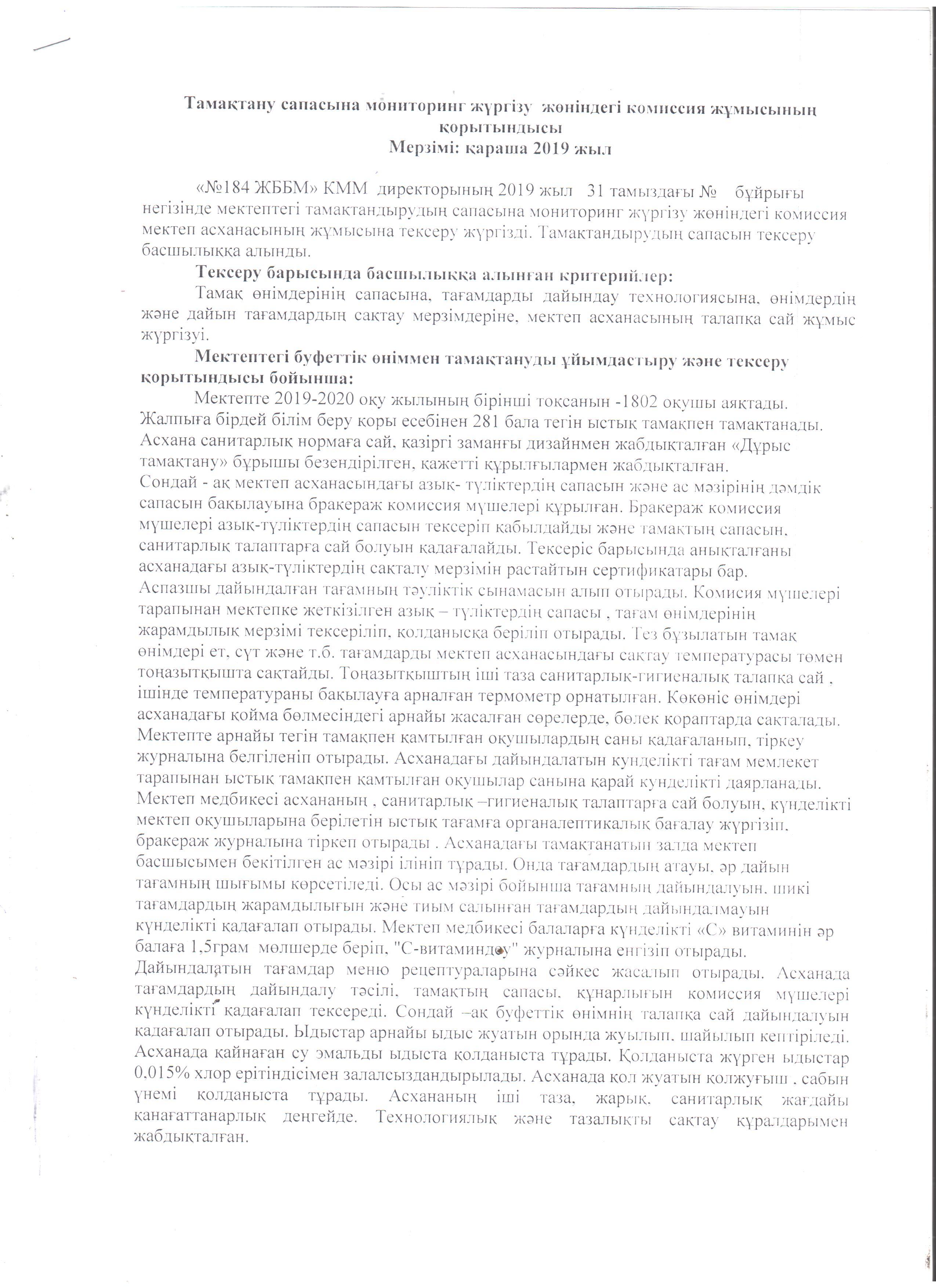 01 ноябрь 2019 0 1 2 3 4 5 Тамақтану сапасына мониторинг жүргізу Осы беттің QR-коды:QR-код этой страницы: