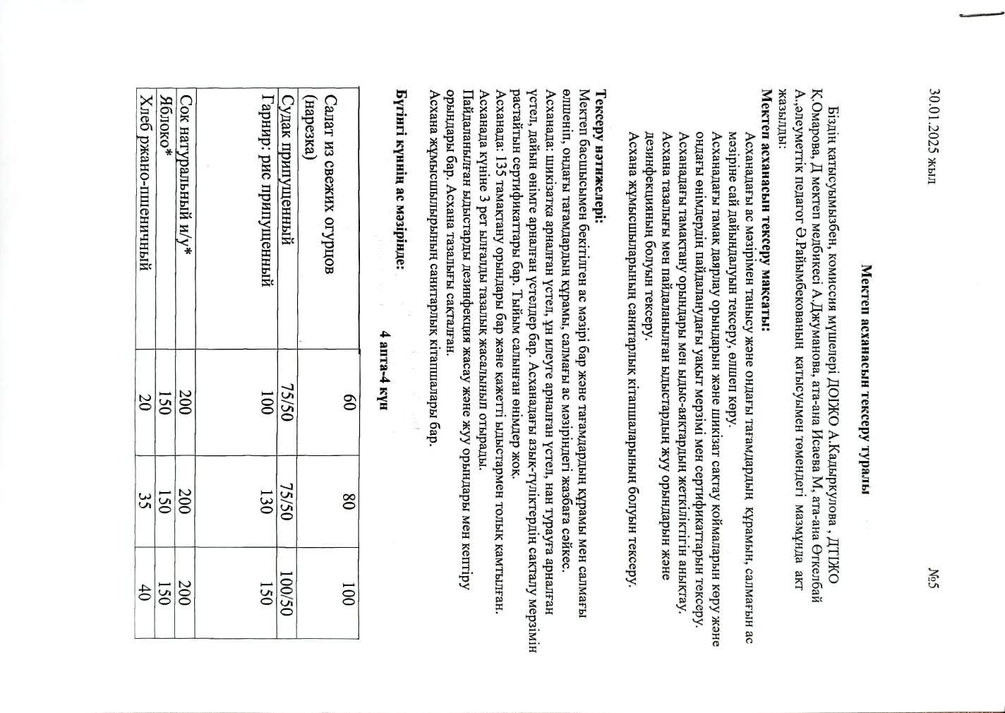 30 январь 2025 0 1 2 3 4 5 Асхана жұмысын тексеру және ыстық тамақтың сапасын тексеру Осы беттің QR-коды:QR-код этой страницы: